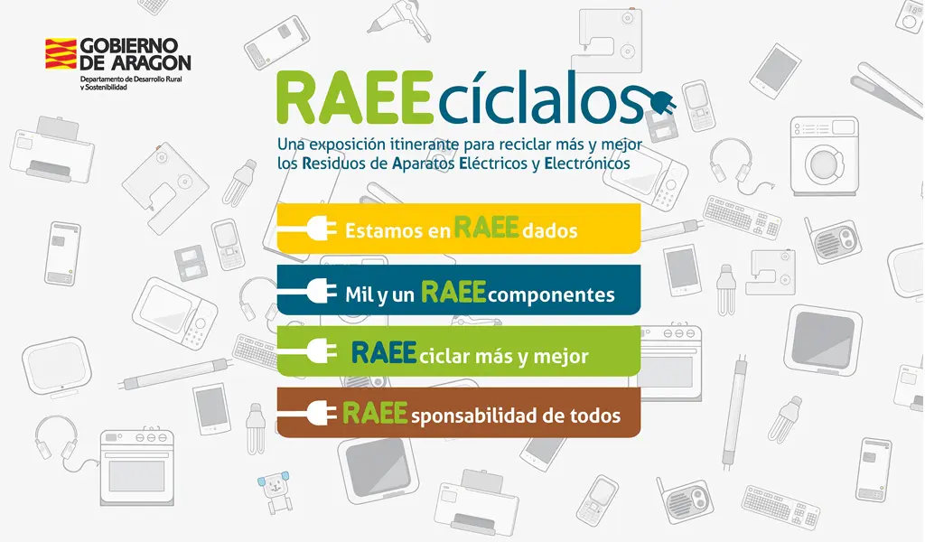 La Dirección General de Cambio Climático y Educación Ambiental del Departamento de Medio Ambiente del Gobierno de Aragón es la promotora de “RAEEcíclalos”, una exposición itinerante que muestra la importancia del reciclaje de los residuos de aparatos eléctricos y electrónicos. Es decir, de todos los aparatos que funcionan con pilas, baterías o conectados a la red eléctrica.