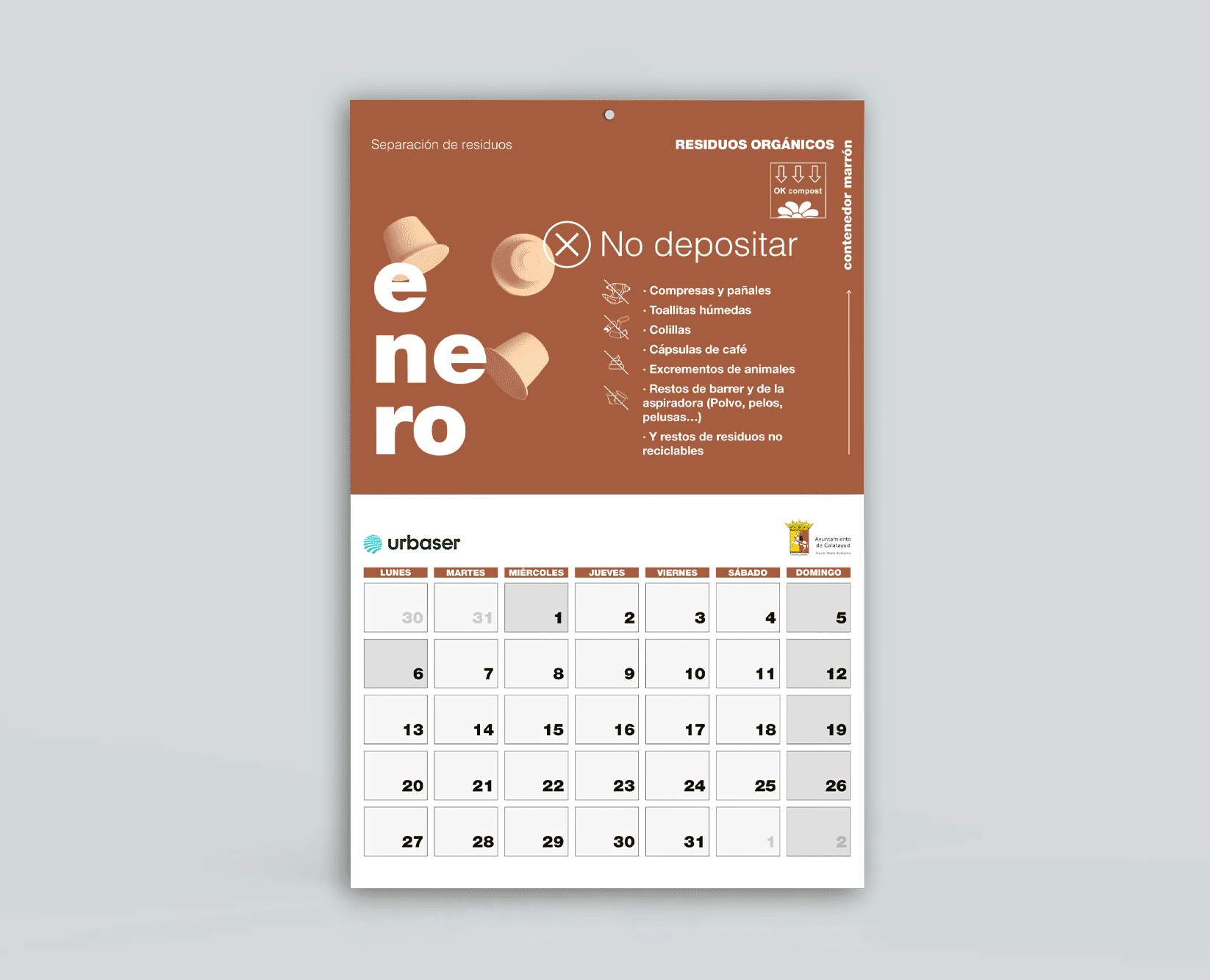 En 2024 llevamos a cabo en Calatayud la campaña de concienciación medioambiental “La ciudad que quieres es posible contigo – #CalatayudMásLimpio”, centrada en hábitos de reciclaje y uso correcto de los contenedores. El eje de la acción fue un calendario medioambiental con datos sencillos y claros sobre reciclaje, pensado para entrar en las casas y acompañar a las familias durante todo el año.